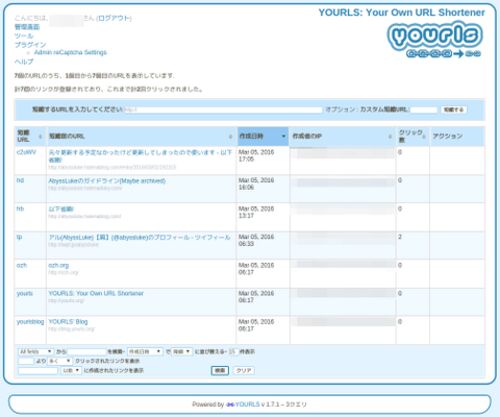 先日ドメインを更新したrita.link、今日URL短縮サービス構築スクリプトのYOURLSをインストールした。自分専用だが。プラグインや日本語化ファイルもあるのでもしかするといろいろ捗るかもしれない。現在ファイルアップロードプラグインでも入れるか検討中。…