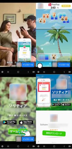 記事画像はとあるゲームで流れた、とあるソリティアゲーム(名前とかはぼかしている)の動画広告(Unity Ads)なのだが、翻訳調な日本語が使われており、最後の画面(右下)でも英語タイトルなので海外のゲームであることがわかる。そこまではいい。問題はPayPay残…