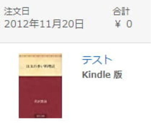 どうでもいい話。Amazonの過去の注文履歴を漁っていたところ、Kindle無料本の一つが「テスト」という商品名になっていた件。画像は「注文の多い料理店」だが、どうしてこうなったかは不明。「テスト」の商品ページがどうなっているかは未確認。