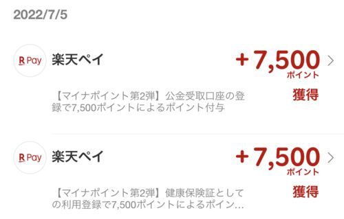 申し込んでいたマイナポイント第2弾の分の楽天ポイント(健康保険証利用登録、公金受取口座登録) 計15000ポイントが今日付与された。恐らく半分以上は林檎カードに溶けるでしょうw*1 楽天経済圏以外ではモバイルSuica(Android版に限る)に落としてAmazonとか…
