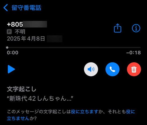 昨日、povo回線宛に+805から始まる番号から中国語の電話が掛かってきた件。留守電の自動文字起こしでは「新珠代42しんちゃん…」と空耳的文字起こしがされている。805の国番号は存在しない(Wikipedia参照)ので適当にスプーフィングしたと思われる。しかし何の…