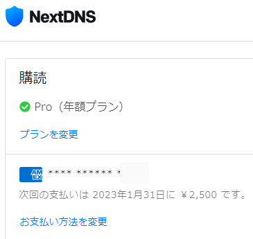 2023-01-28 NextDNS Proそろそろ更新ですねぇ 雑記ネット 一行ブログ (Aff)NextDNS Proが契約からまもなく1年ということで更新の時期である。物価高やら円安やらいろいろあったが現時点で値上げはされていない模様。ブロックリストなどいろいろできるから継続ですねぇ。DNSがダウンしたことは恐らく無かったし。(記事画像は使いまわし)