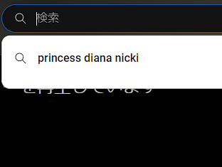 最近になって、YouTubeの検索ボックスを開くと検索した覚えのない謎の候補(記事画像の例だと"princess diana nicki")が出てくる件。検索履歴は切っている。この候補は毎日変わるが、もしかして広告の類だったりするのか……?よくわからん。